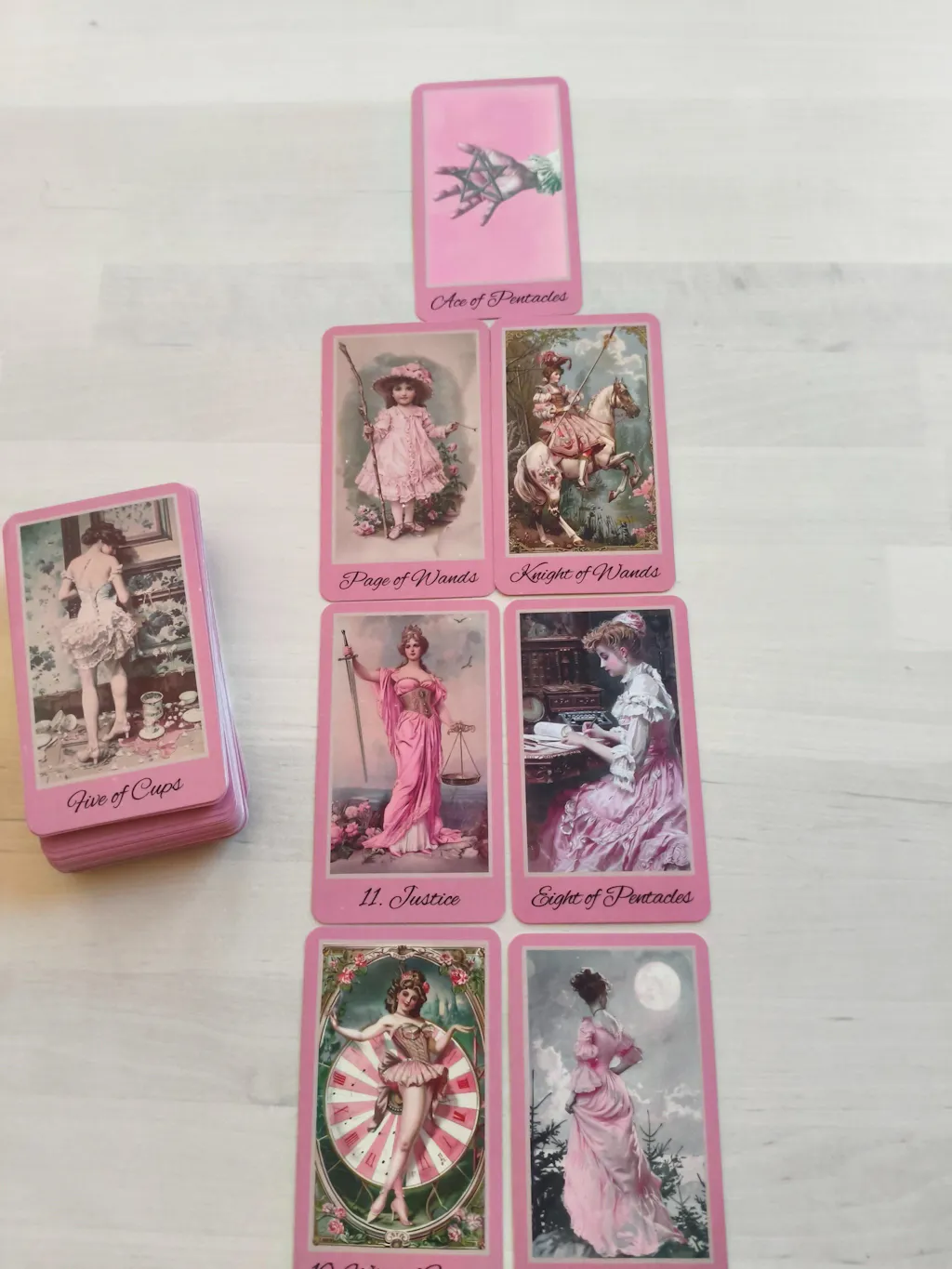 The pastel pinks, lavenders, and soft colours create a dreamy, ethereal backdrop that brings a touch of softness and allure to your readings.